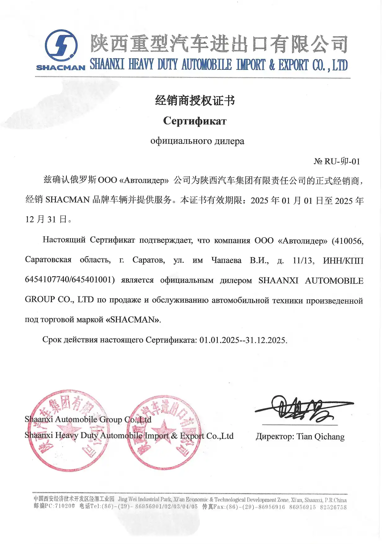 Компания ООО «АВТОЛИДЕР» является официальным дилером «Shaanxi Automobile Group» на территории РФ и обладает всем необходимым, чтобы в полном объеме решать проблемы наших клиентов, в целях экономии их времени и средств.